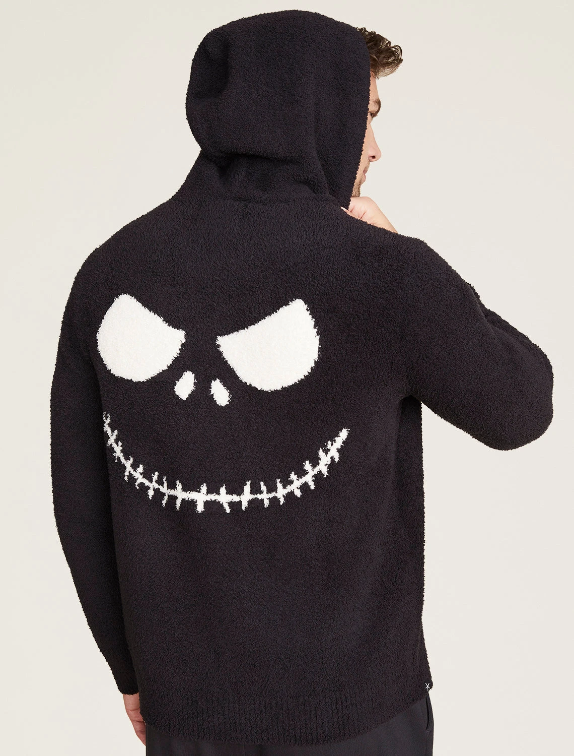 This super-comfortable hoodie is designed in a unisex style to provide a relaxed fit for both men and women. It features a zip front and a kanga-style pocket for the perfect silhouette. The ribbed cuffs and waistband finish the look, while a knitted jacquard image of Jack Skellington’s face at the back adds some extra character.