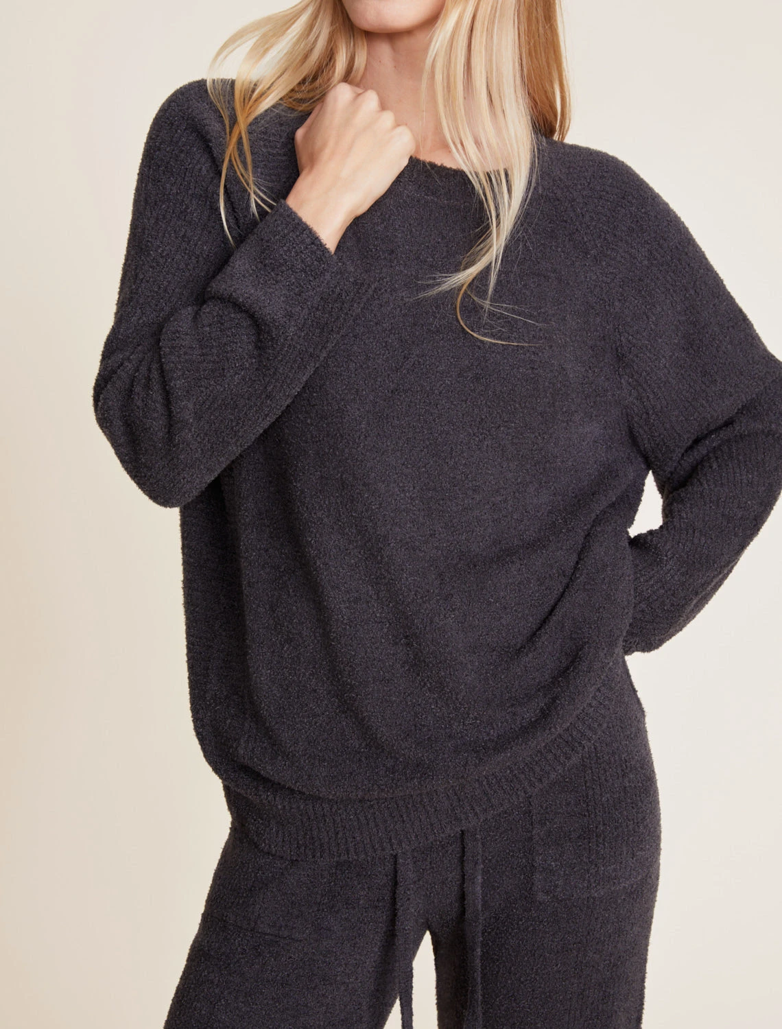 Stay cozy and stylish in this relaxed-fit pullover. Featuring a jersey body with generous dolman sleeves, this style falls to mid-hip with ribbed finishes at the neck and bottom openings. Perfect for casual days or nights and pairs well with its matching pant, our CozyChic Lite Rib Block Pant. Model is 5′ 7″ and is wearing a size XS.