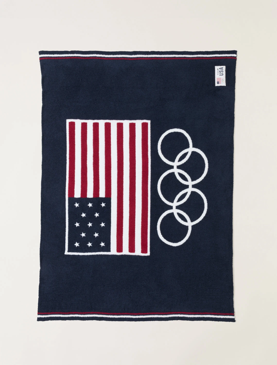 This Cozychic® Team USA Flag Olympic Ring Throw makes a perfect addition to your Olympic-themed decor. The official logo of the USA Olympics and contrast stripe tipping at the rib border add subtle style to any room. Show your support for Team USA in a cozy fashion. Measures 54″ x 72″.