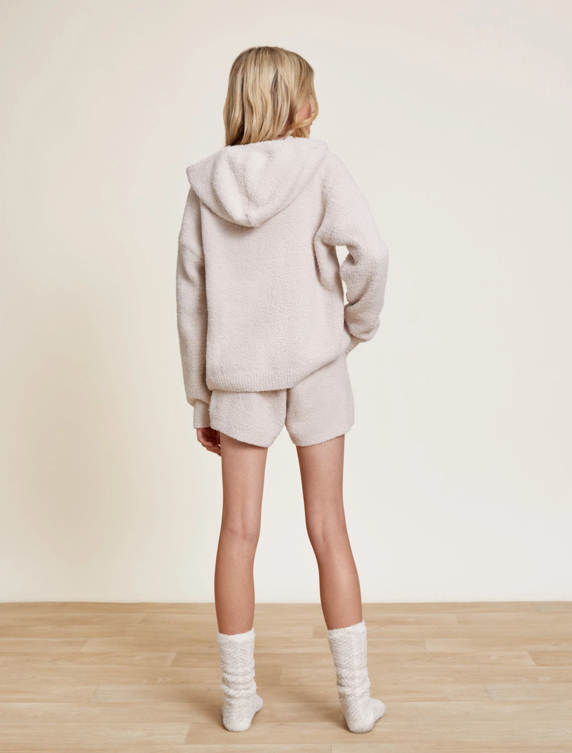 Feel good and lounge in style with this effortless set, proudly crafted from 100% recycled CozyChic yarn. Featuring a drop-shoulder, relaxed-fit hoodie and patch pocket shorts.