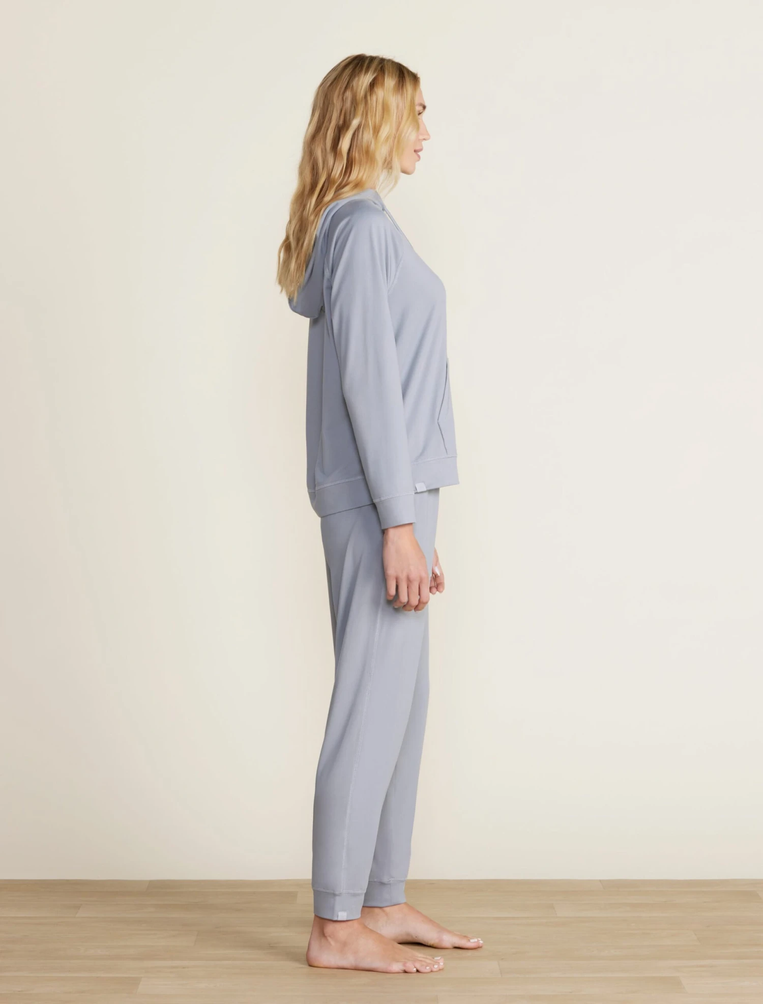 From our Barefoot Dreams Malibu Collection®, this semi-relaxed raglan hoodie is made from our signature Butterchic fabric and is designed to keep you comfortable and stylish. It features a kanga pocket for convenience. Move freely in this lightweight hoodie, perfect for everyday wear. Pairs perfectly with the Malibu Collection® Butterchic Short and the Malibu Collection® Butterchic Knit® Jogger. Models are between 5’9″ and 5’11” and wearing a size Small.