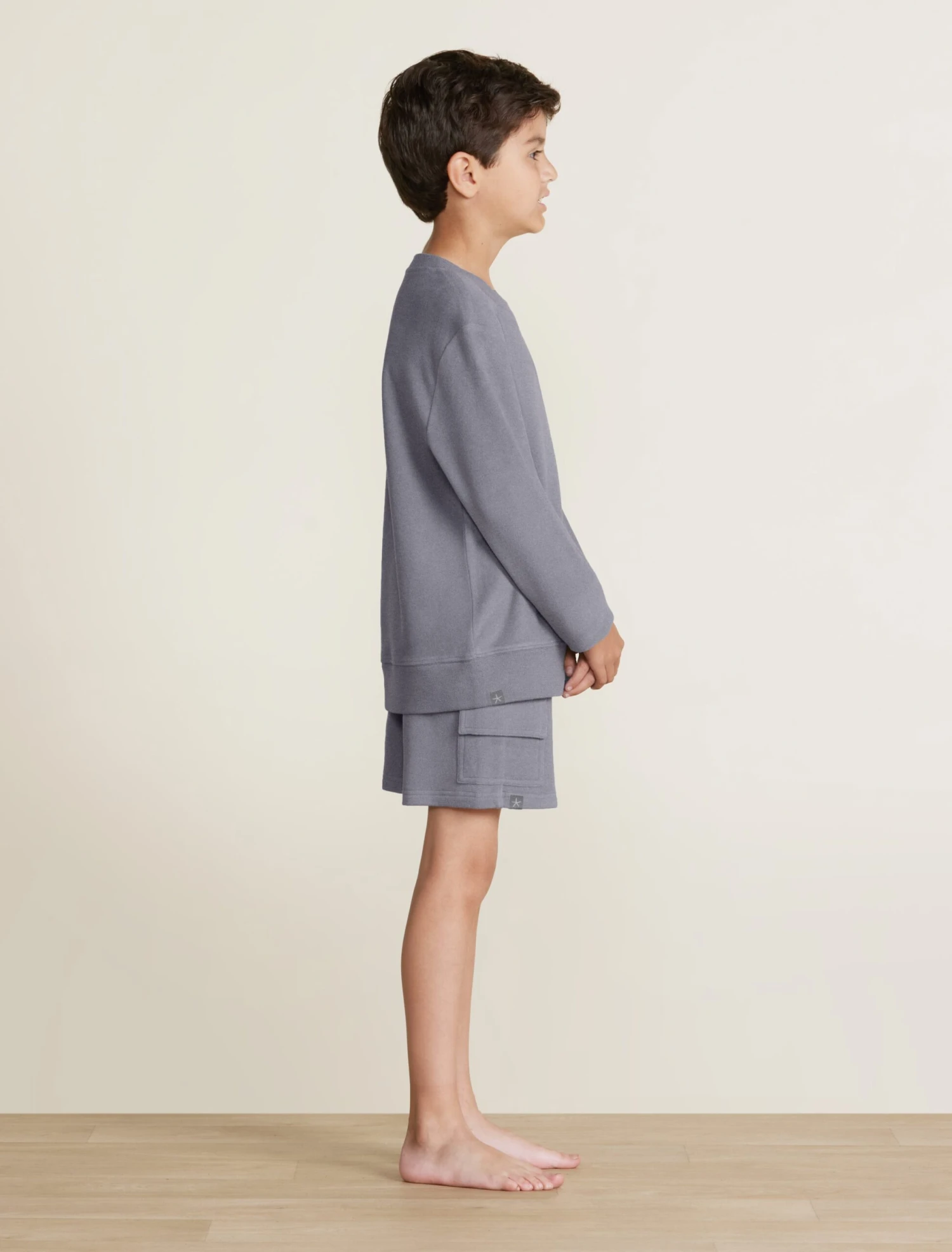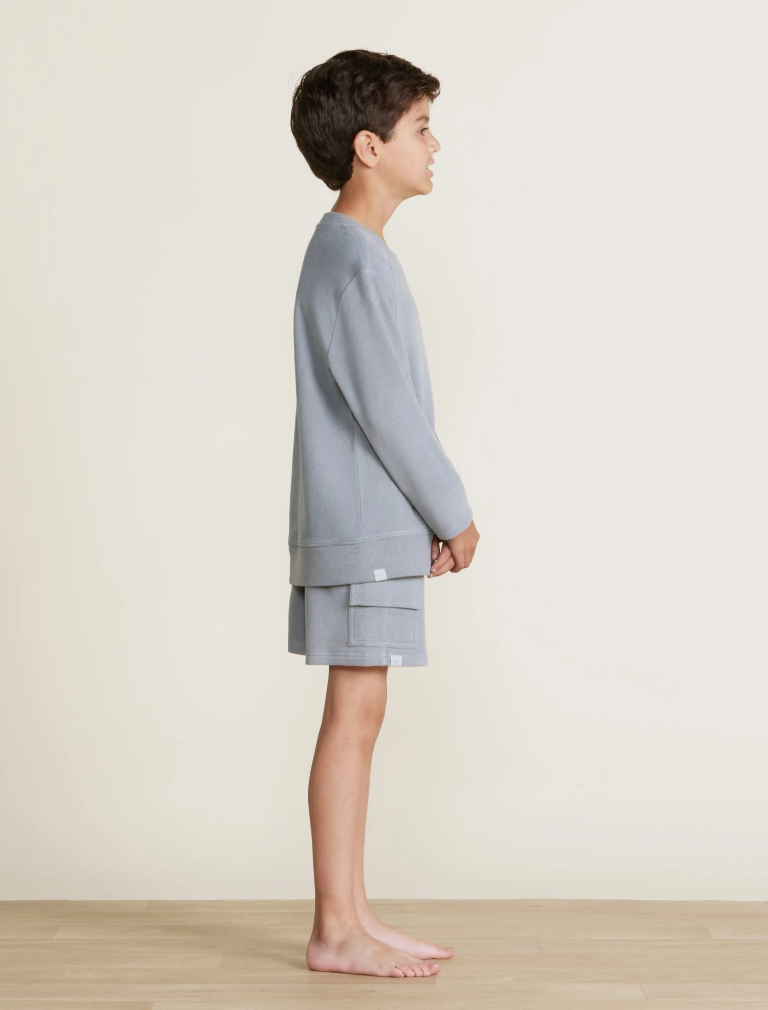 From our Barefoot Dreams Malibu Collection®, the Youth Brushed Fleece Pullover provides comfort and warmth with its crew neck and ribbed neck, cuffs and waistband. Its brushed fleece fabric provides an ultra-soft feel. Perfect for those looking for superior comfort and style. Complete the set with the Malibu Collection® Youth Brushed Fleece Cargo Short. Model is wearing Size 8-10.