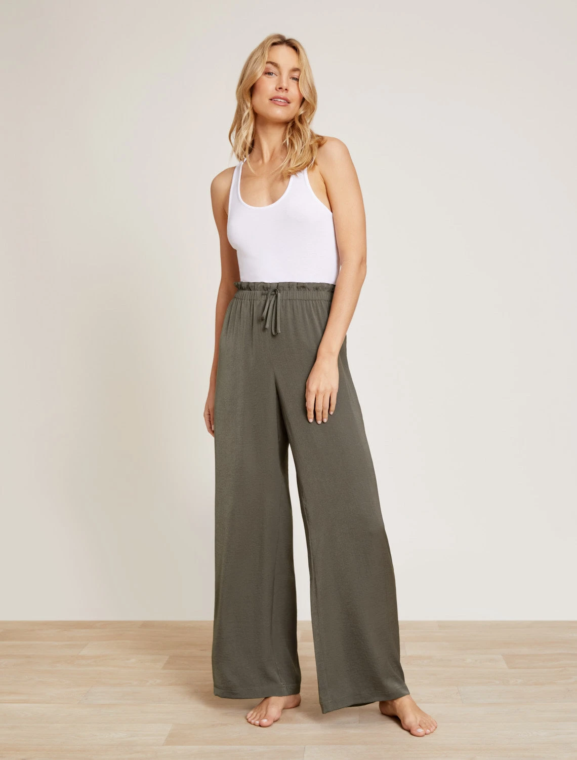 From our Day to Night Collection ™, these stylish pants are comfortable for sleep or chic for everyday wear. A long wide-leg silhouette creates a flattering shape, while paperbag waist detail features an adjustable drawcord and soft elastic for all day, or all night, comfort. Features two in-seam pockets. Model is 5’8″ and wearing a size S.